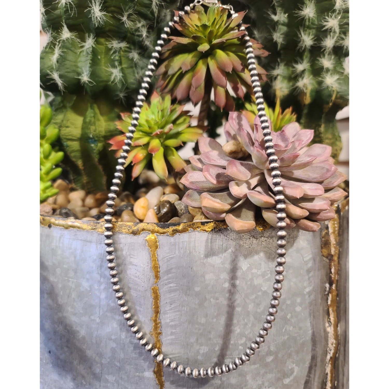 These 4MM Navajo Pearls are stunning alone or in a stack! You can’t go wrong with these beautiful sterling silver pearls. These come in 14″, 16″, 18″, 20″, 24″ & 30 inch lengths.Â