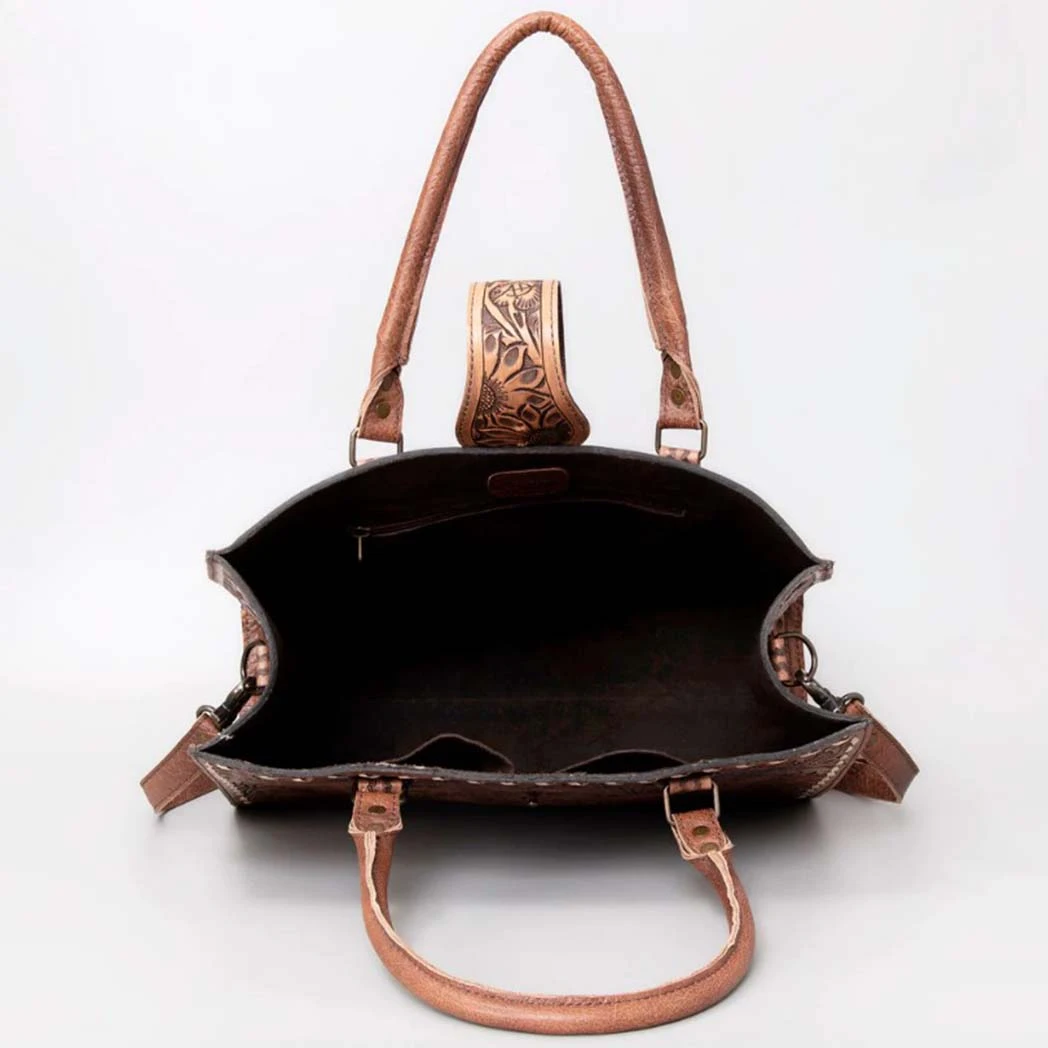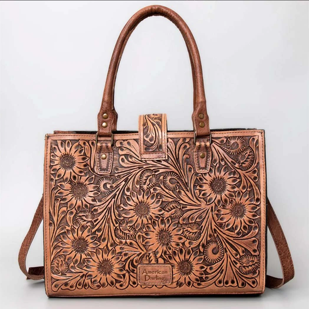 We just love this beautiful fully tooled leather bag. Perfect for a lager purse or use it as a laptop case and it will be perfect.Â