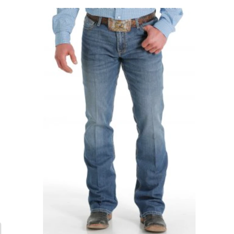 This medium stonewash, slim fit IAN features hand sanding, whiskers, chevrons and knee starbursts on a lightweight performance denim. Heavy embroidery in khaki and cream pair perfectly highlighting the back pockets.