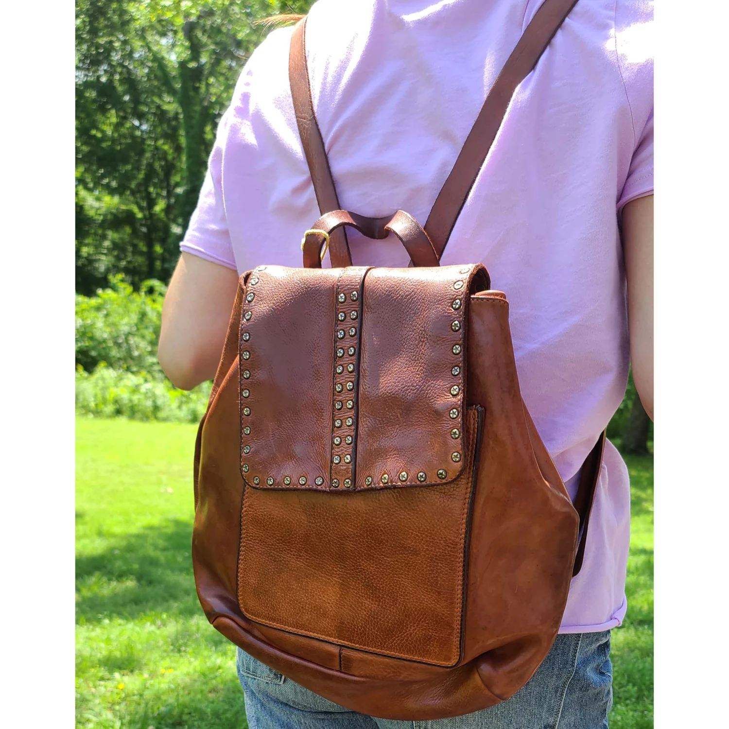 This soft supple leather back pack will quickly become a favorite of yours. Perfect for an over night bag or a daily use bag.Â