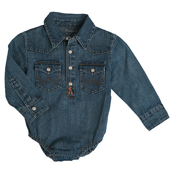 Made for the littlest of cowboys and cowgirls! This Wrangler Long Sleeve Body Suit is a must have.Â
